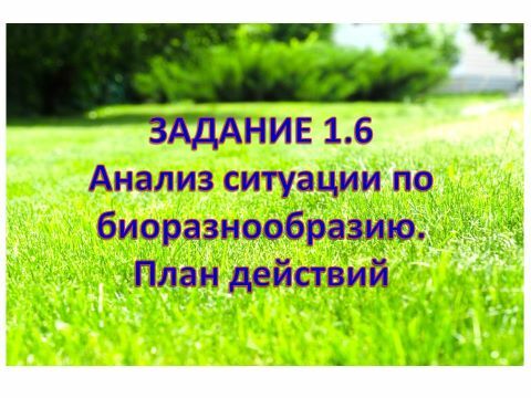 6.;1.6. Провести анализ ситуации по биоразнообразию на территории учреждения образования и разработать план действий на три года по увеличению биоразнообразия территории учреждения образования; Октябрь;Железная О.Г.;1. Провести анализ ситуации по биоразнообразию на территории учреждения образования. <br>2. Составить план действий на три года по увеличению биоразнообразия натерритории учреждения образования. <br>3. План согласовать с администрациейучреждения образования и разместитьна сайте учреждения образования. <br>4. Указать дату выполнения задания и участников. <br>5. Ежегодно представлять результаты мониторинга успешности природоохранных действий, анализ новой ситуации.