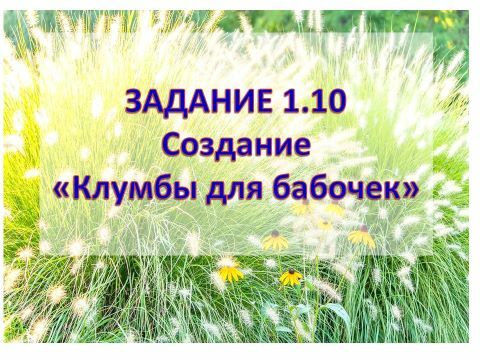 10.;1.10. Создать и размесить на территории учреждения «Клумбу для бабочек»;Март-май;Клевец О.Л.;1.Создать «Клумбу для бабочек» площадью не менее 4 - х метров квадратных. <br>2. Местонахождение клумбы отметить на картосхеме территории учреждения образования. <br>3. Фотографии клумбы, бабочек и других насекомых на ней разместить на сайте учреждения образования. <br>4. Указать дату выполнения задания и участников.