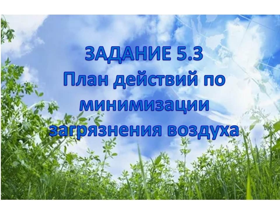 3.;5.3. Разработать план действий по минимизации загрязнения атмосферного воздуха в микрорайоне учреждения образования.;Октябрь;Железная Г.В., Железная О.Г.;1. Составить план действий по минимизации загрязнения атмосферного воздуха в микрорайоне учреждения образования. <br>2. Согласовать план с администрацией учреждения образования. <br>3. Разместить план на сайте учреждения образования. <br>4.Выполнить план действий по минимизации загрязнения атмосферного воздуха в микрорайоне учреждения образования.